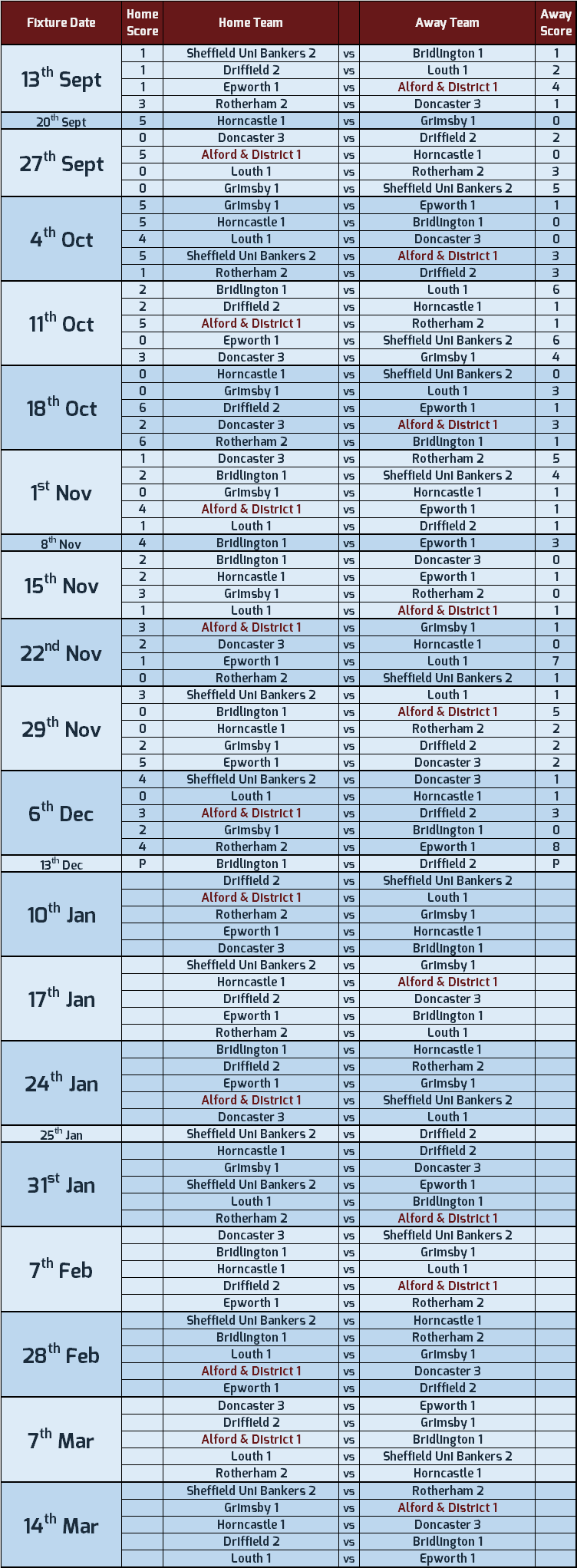 Click for Yorkshire & North East 2022-2023 combined upcoming fixtures and overview