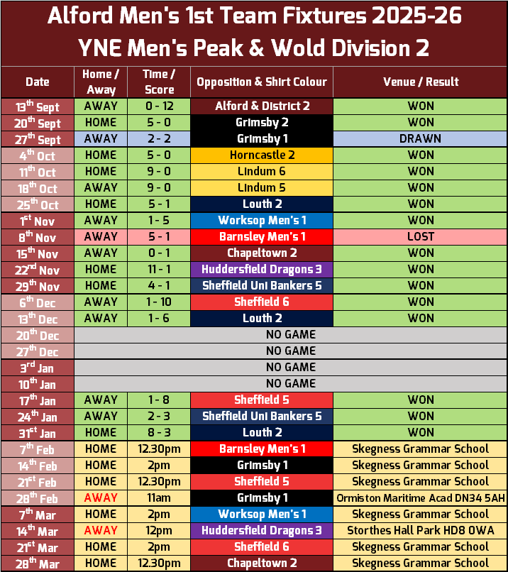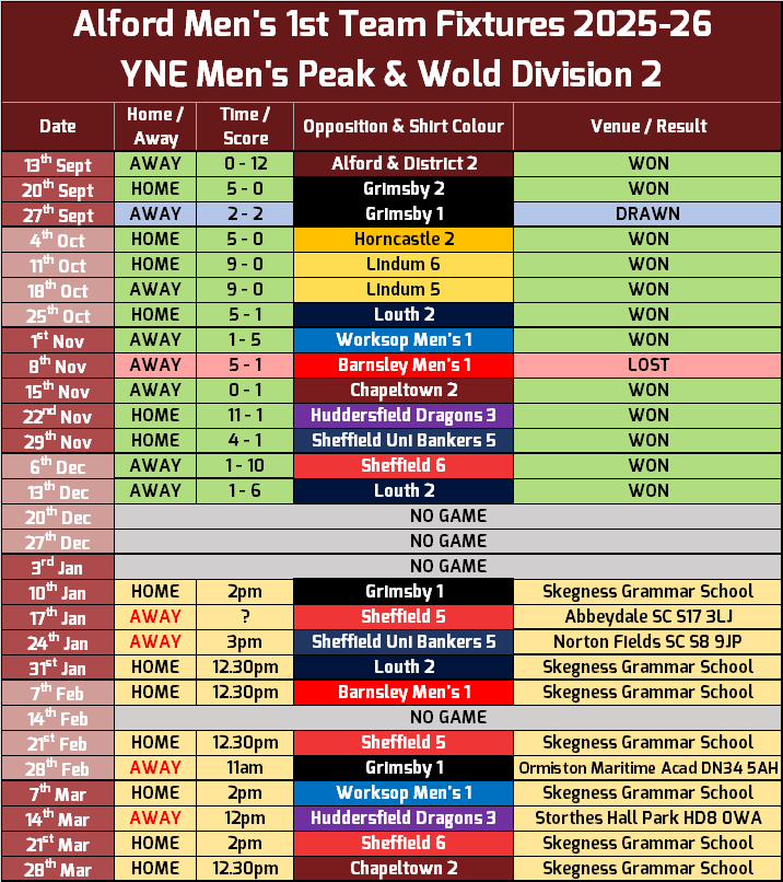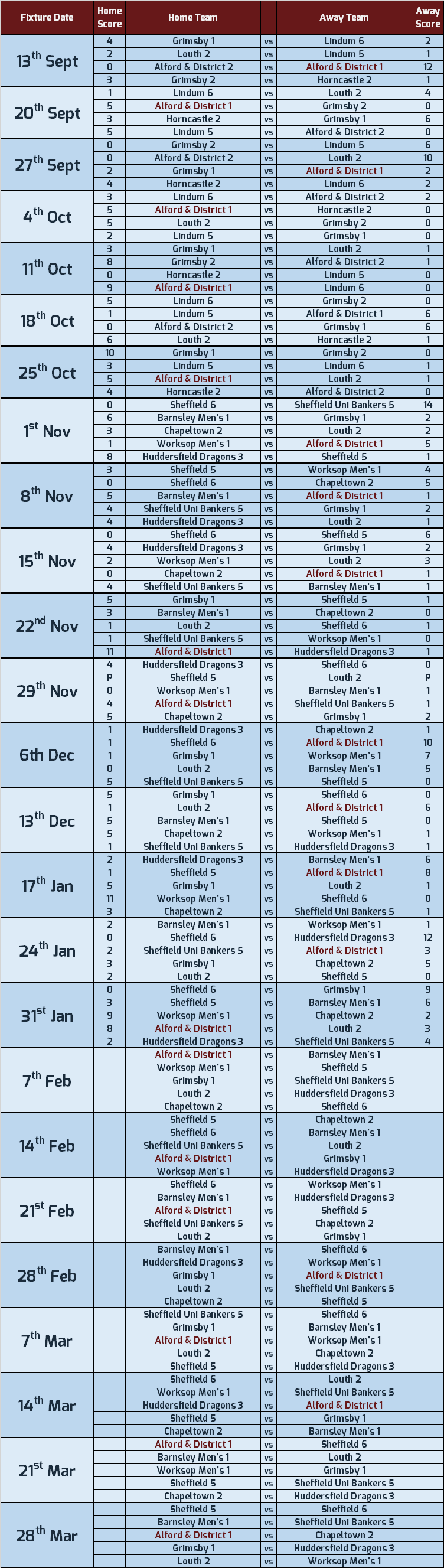 Click for Yorkshire & North East 2022-2023 combined upcoming fixtures and overview